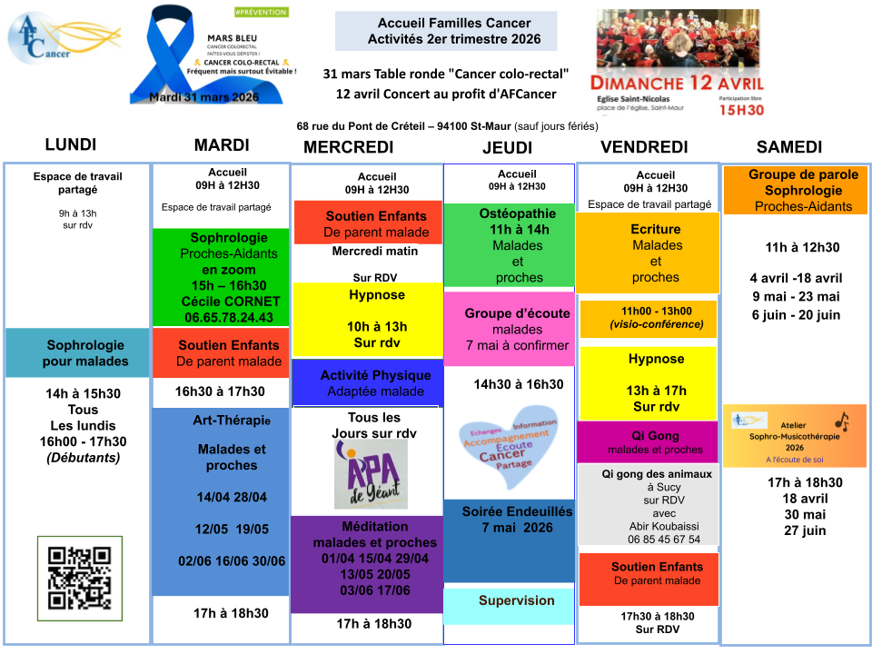 Agenda des ateliers